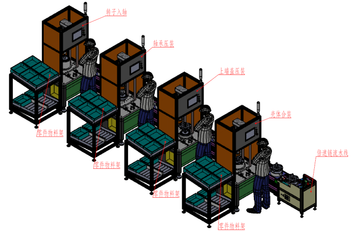 自動化專機是單臺的自動化設(shè)備,只能完成產(chǎn)品生產(chǎn)過程中的單一的某項工序,功能有限。在完成好某道工序后,已完成的半成品又需要采用人工方式傳遞給其他專機設(shè)備上繼續(xù)下一道的生產(chǎn)工序。完成整個生產(chǎn)需要一系列不同功能的專機和人工參與才能完成,這樣既降低了場地利用率,又增加了生產(chǎn)員工和設(shè)備,無形中也增加了生產(chǎn)成本,不利于產(chǎn)品效率和質(zhì)量的提高。若將產(chǎn)品生產(chǎn)所需要的一系列不同的自動化專機按照生產(chǎn)工序的先后次序排列,則通過自動化輸送系統(tǒng)可將全部專機連接起來,即可省去專機之間的人工參與過程。